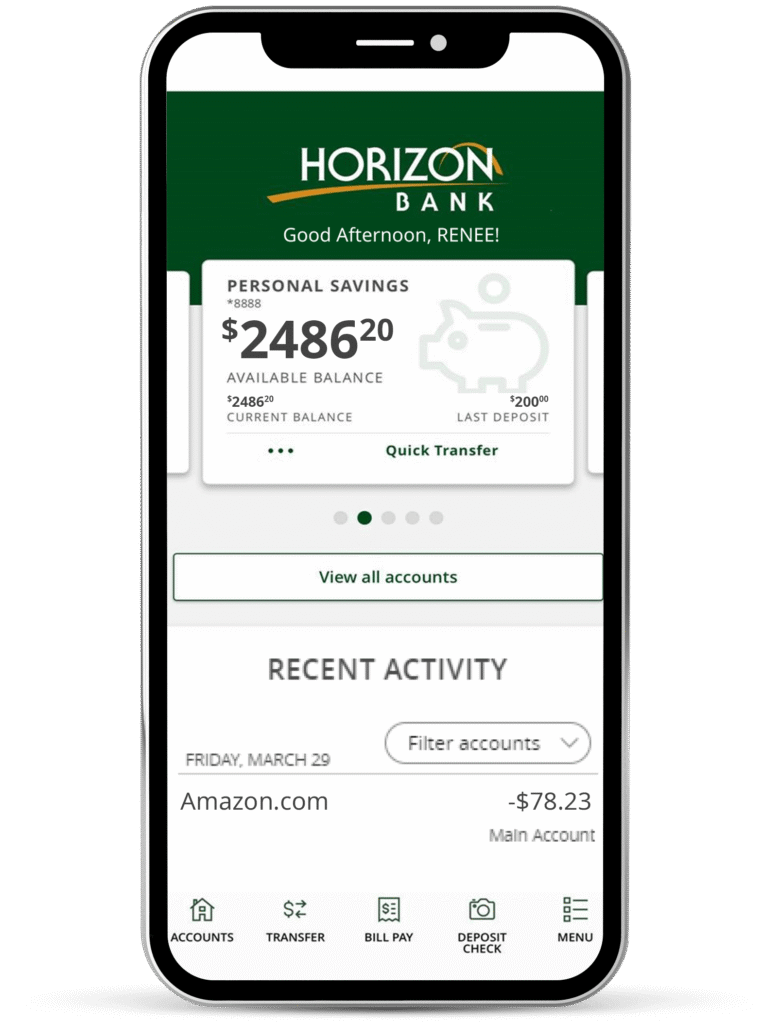 With Horizon Bank’s mobile-banking app, your accounts are just a tap away.